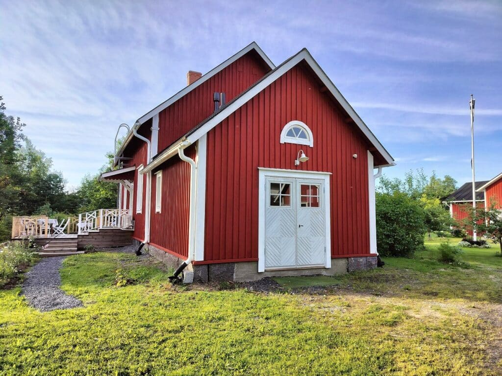 Suunnittelimme 1927 ratatyöntekijän asunnoksi ja laiturirakennukseksi rakennetun hirsitalon muuttamisen asuinkäyttöön. Autotalli jaettiin kylpyhuoneeksi ja kylmäksi varastotilaksi ja sisäänkäynnille tehtiin uusi kuisti. Muutokset tehtiin laadukkailla materiaaleilla ja harmonisesti vanhaan sovittaen.