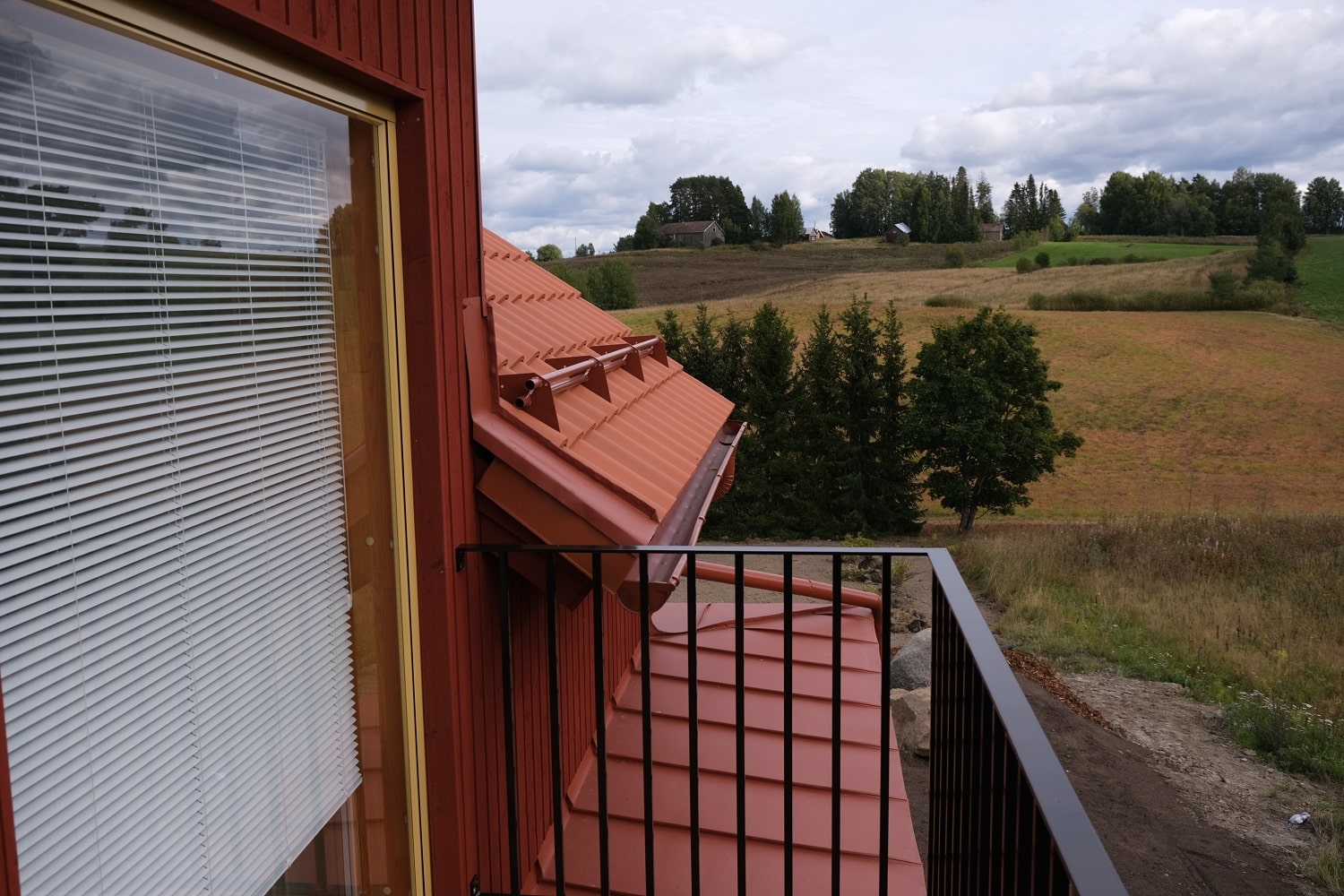 Pääsimme luomaan uutta ja kaunista. Suunnittelimme uuden, puurakenteisen asuinrakennuksen talousrakennuksineen ja hirsisaunoineen. Suunnittelussa kiinnitettiin erityishuomiota puuston ja niittykasvillisuuden varjeluun. Asuinrakennuksen oleskelutilat avautuvat kauniisiin peltonäkymiin.